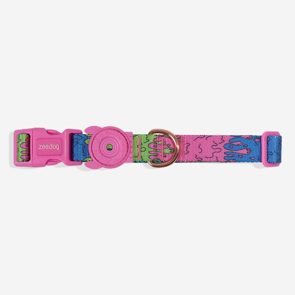 The Melted collar is a fully adjustable dog collar from the Lords of Sheddings Pets collection. It is super soft on the fur and is made from durable polyester. The buckle has a 4-point locking system for added safety.